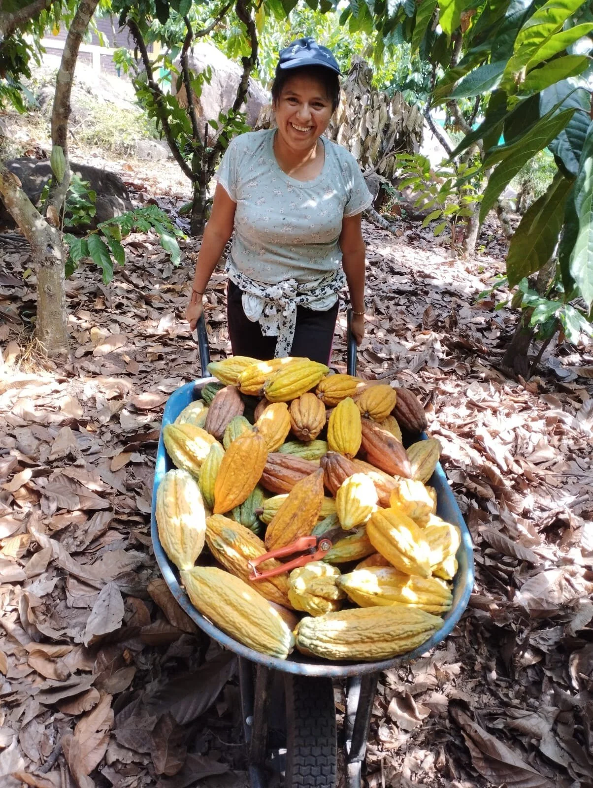 One of these women is Katioska, who joined the cooperative as a cacao selector. After one year, she was promoted to the supply area in recognition of her commitment and willingness to learn about cacao production. Today, she is the sole provider for her two children after her husband was incarcerated.